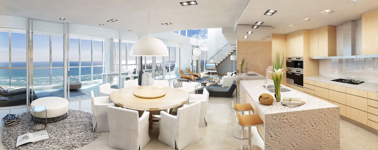 High definition 3D visualisation and multimedia package for sales and marketing of beachfront apartments.
